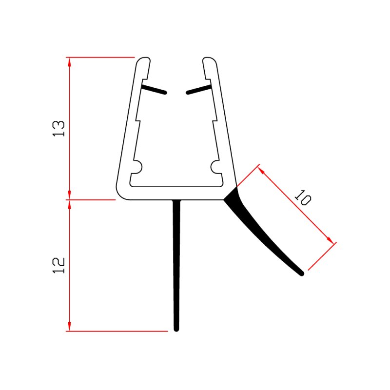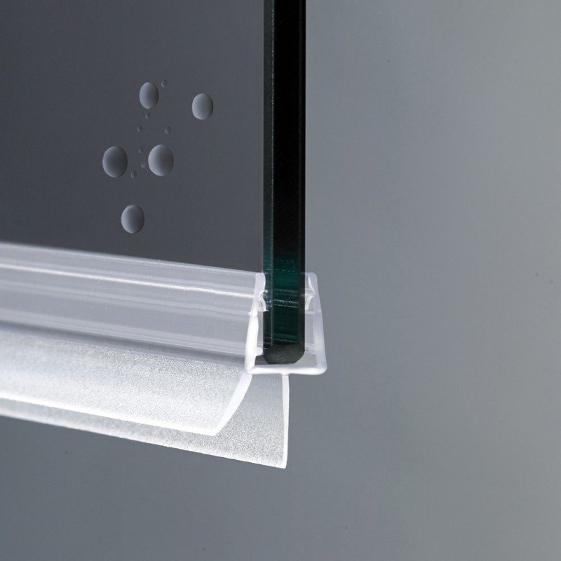 – La parte morbida, che invece compone l’aletta flessibile, svolgerà la funzione vera e propria di tamponamento contro le fuoriuscite e gli schizzi d’acqua. L’aletta gocciolatoio inoltre, permette di far cadere le gocce d’acqua che scorrono sul vetro direttamente dentro il piatto doccia.